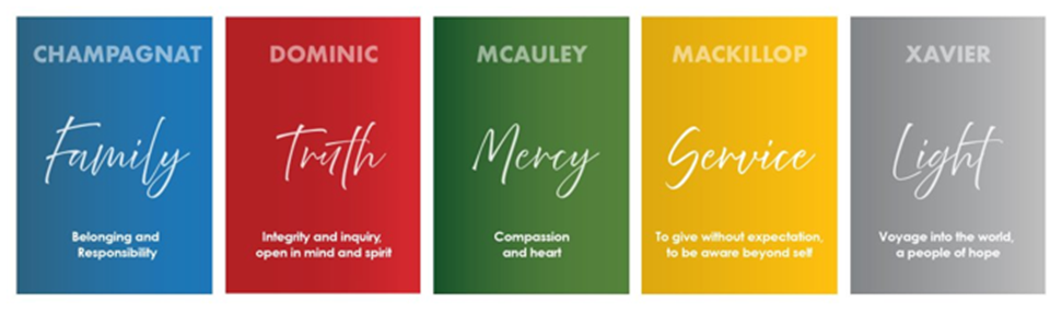 At the College the students are divided into one of four House groups: Champagnat, MacKillop, McAuley and Dominic, named after the founders of the religious orders who established Catholic education in the Maitland Newcastle Diocese.