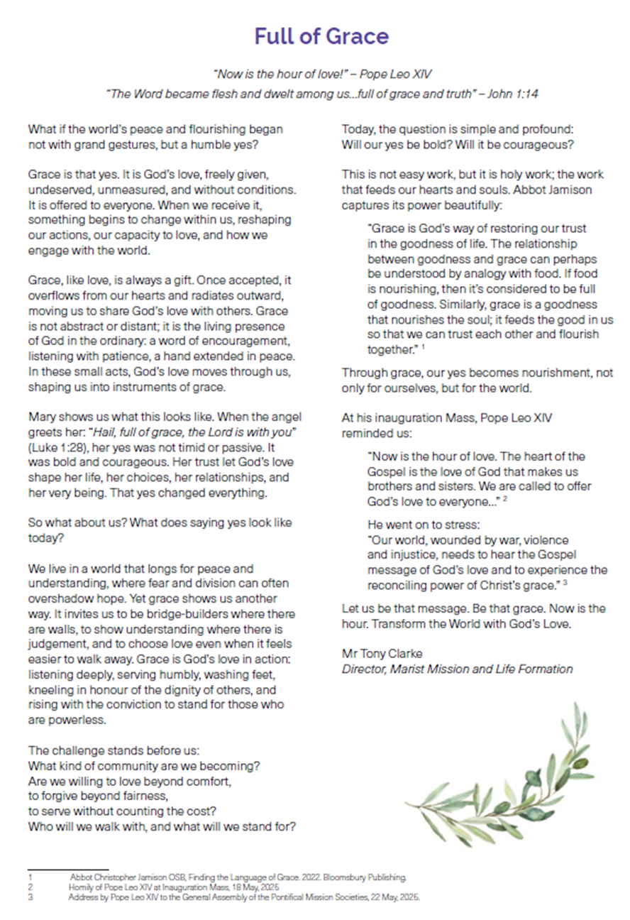 Let this image be our challenge and our inspiration. Let it remind us that grace is not abstract, it is the touch of God in the ordinary. And when we receive it, live it, and become it, we do more than reflect God’s love, we transform the world with it.